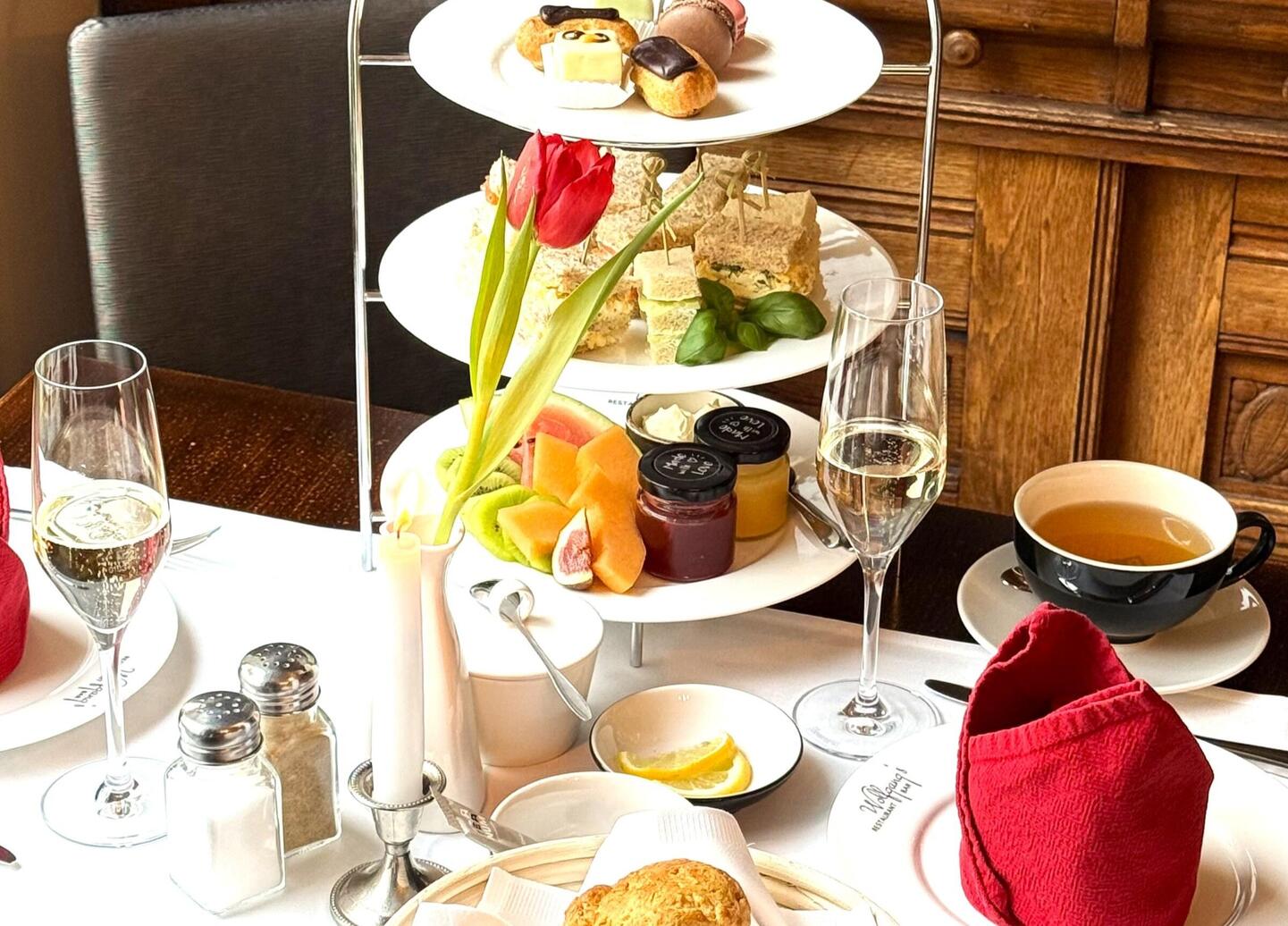 - eine Kaffeeklatsch-Etagere im Restaurant Wolfgang´s mit herzhaften und süßen Leckerein sowie Kaffee oder Tee an einem Nachmittag Ihrer Wahl